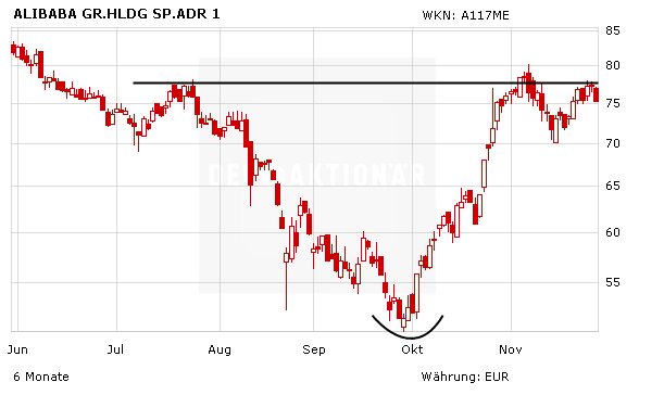 Die Alibaba-Aktie hat in der letzten Woche eine starke Kursentwicklung hingelegt. Zwischenzeitlich stand ein Plus von acht Prozent zu Buche. Am Freitag gab die Aktie allerdings wieder einen Teil der Gewinne ab. Der extrem schwache Börsentag in China zog auch die Alibaba-Aktie mit nach unten. Der chinesische CSI-300-Index verzeichnete den höchsten Tagesverlust seit August.