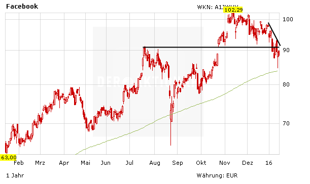 Auch die Facebook-Aktie konnte sich dem schwachen Gesamtmarkt zu Jahresbeginn nicht entziehen. In Folge der China-Sorgen ging es kräftig nach unten. Die 100-Dollar-Marke wurde wieder unterschritten. Am Donnerstag setzte das Papier zu einem Erholungsversuch an. Bullishe Analystenstimmen und ein starker Nasdaq sorgten für ein deutliches Kursplus.