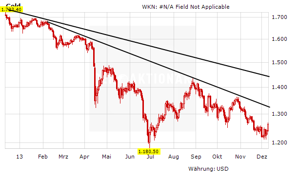Sollten die großen Anleger wirklich anfangen, sich auf der Long-Seite zu positionieren, dann könnte dies zu einem gewaltigen Short-Squeeze bei Gold führen. Nachdem sich Gold fast zwei Jahre im Abwärtstrend befindet, ist das Rebound-Potenzial enorm. Noch ist es nicht soweit: Doch die Anzeichen mehren sich, dass Gold tatsächlich vor einem Trendwechsel steht. Beobachten Sie den Chart genau: Es könnte sich auszahlen. Um einen ersten Fuß in der Tür zu haben, hat DER AKTIONÄR einen Gold Turbo-Long von der Société Générale in das Real-Depot gekauft.
