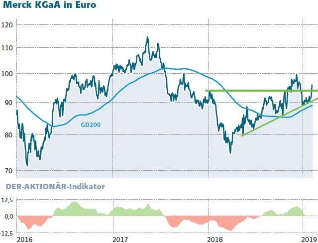 Die Aktie von Merck kann von dieser Meldung mit einem Kursanstieg von 2,3 Prozent auf 95,94 Euro profitieren. Damit ist der Wert hinter Wirecard, Fresenius Medical Care, Covestro, Adidas und Fresenius am Dienstagnachmittag der sechststärkste DAX-Wert des Tages. Zuletzt konnte Merck mit einigen positiven News auf sich aufmerksam machen. Anleger bleiben bei Merck investiert. Wichtig wäre allerdings aus charttechnischer Sicht, dass möglichst bald der Sprung über die psychologisch wichtige Marke von 100 Euro gelingt.