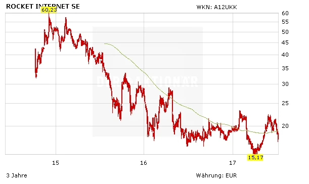 Trotzdem kommt die Rocket-Aktie auch nach dem IPO nicht in die Gänge, der erhoffte Befreiungsschlag bleibt aus. Dabei mag eine Rolle spielen, dass der US-Kochboxenlieferant Blue Apron seinen Börsengang in der Vorwoche gründlich vergeigt hatte. Das wiederum wird als schlechtes Vorzeichen für den ebenfalls noch in diesem Jahr erwarteten Börsengang von HelloFresh gewertet, wo Rocket zu 53 Prozent beteiligt ist.