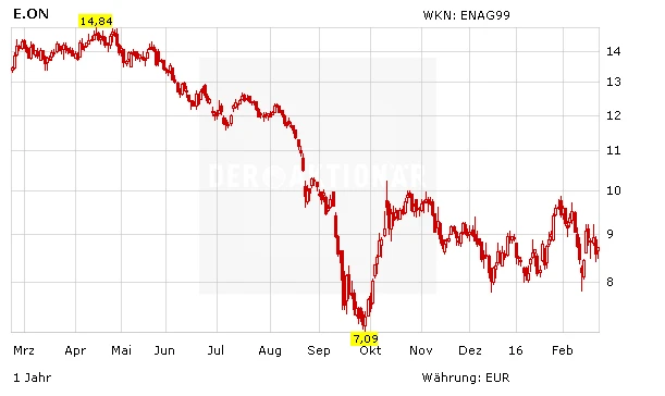 In der vergangenen Woche hatte der Branchenkollege RWE wegen Milliarden-Abschreibungen und einem Verlust von 200 Millionen Euro die Dividende zusammengestrichen. Entsprechend hoch ist nun die Spannung, wenn E.on am 9. März seine Bilanz für das abgelaufene Geschäftsjahr vorlegt.