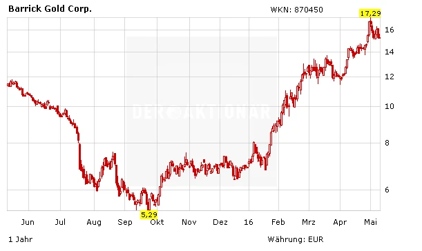 Interessant ist, dass in den USA Artikel kursieren, wonach die Barrick-Aktie ein klarer Verkauf sei. Die Argumentation klingt logisch und fußt auf den jüngsten Zahlen: Die Goldproduktion ist im ersten Quartal von 1,39 Millionen Unzen im Vorjahr auf 1,28 Millionen Unzen zurückgegangen. Der Umsatz sank on 2,25 Milliarden auf 1,93 Milliarden Dollar. Unter dem Strich stand ein Nettoverlust summierte sich auf 83 Millionen Dollar – nach einem Gewinn im Vorjahr. Klarer Fall also: Die Aktie ist ein Verkauf. Oder doch nicht?
