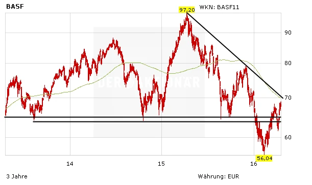 DER AKTIONÄR bleibt von der BASF-Aktie überzeugt. Zwar bleiben die Marktbedingungen wohl noch einige Monate schwierig, die Bewertung und die Charttechnik sprechen allerdings für den DAX-Titel. Zudem winkt eine stattliche Dividendenrendite von 4,2 Prozent (Hauptversammlung, also der Stichtag für die Dividendenausschüttung, ist am 29. April).