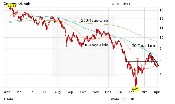 Grund für die Outperformance: Die Experten der italienischen Mediobanca senkten ihre Einstufung für die Geldhäuser angesichts niedriger Zinsen und hoher regulatorischer Risiken auf "Neutral". Die Commerzbank-Aktie sehen sie jedoch im Gegensatz zur Deutschen Bank als einen Branchenfavoriten. Das Rating für die Commerzbank lautet auf „Kaufen“. Das Kursziel sehen die Experten bei elf Euro.