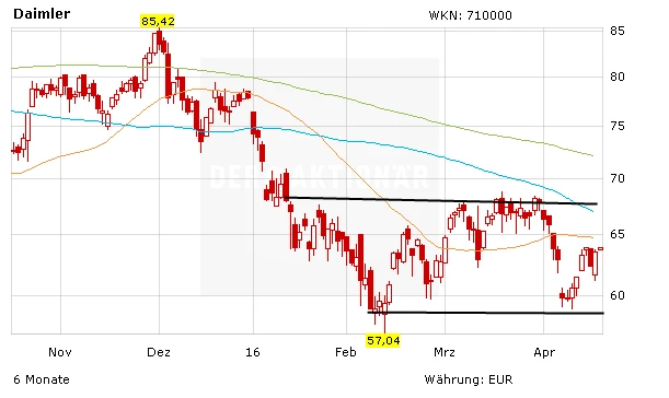 Fakt ist: In den letzten Wochen war die Stimmung gegenüber den Autobauern extrem negativ. DER AKTIONÄR bleibt für Daimler optimistisch. Die Marke von 60 Euro hat sich erneut als wichtige Unterstützung gezeigt. Seitdem tendiert die Aktie wieder nach oben. Der nächste Widerstand für die Aktie wartet bei 65,00 Euro. Hier verläuft die 38-Tage-Linie. Im Anschluss ist der Weg bis 66,50 Euro frei.