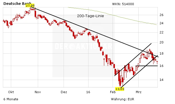 Schlechte Vorgaben von Wall Street und weitere brutale Restrukturierungsmaßnahmen beim Konkurrenten Credit Suisse beeinflussen am Mittwoch den Aktienkurs der Deutschen Bank. Nimmt der Titel trotzdem bald wieder Fahrt auf?