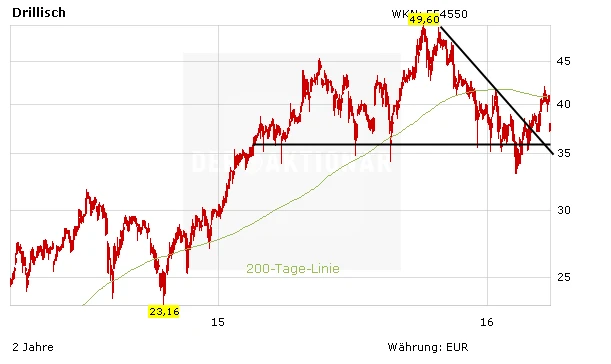 Die Zahlen und vor allem der überraschende Führungswechsel kommen am Markt nicht gut an. Dabei ist der Umsatzsprung durchaus erfreulich. Es zeigt: Drillisch ist auf dem richtigen Weg. Durch die Zukäufe hat sich der Konzern breiter aufgestellt und dürfte die Wachstumsstory bald fortschreiben. Für ein Investment spricht auch die attraktive Dividende. Anleger sollten vor einem Einstieg aber abwarten. Bei knapp 36 Euro trifft die Aktie auf eine starke Unterstützung.