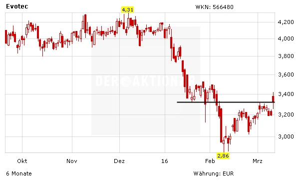 Für Forschung und Entwicklung will Evotec etwa 20 Millionen Euro ausgeben. Schwerpunkt sind unter anderem Krebserkrankungen, Diabetes und Folgeerkrankungen sowie die Stammzellenforschung. Im abgelaufenen Jahr steigerte Evotec seinen Umsatz um 43 Prozent auf 127,7 Millionen Euro. Das bereinigte operative Ergebnis erhöhte sich um 13 Prozent auf 8,7 Millionen Euro. Unter dem Strich ergab sich ein Gewinn von 16,5 Millionen Euro nach einem Minus von fast 7 Millionen im Vorjahr. Grund für den Anstieg war unter anderem ein positiver Einmaleffekt, der mit der Übernahme eines Forschungsstandortes in Toulouse vom Pharmakonzern Sanofi zusammenhing.