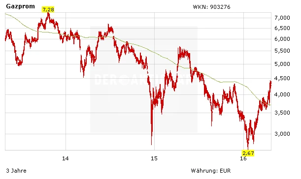Auch DER AKTIONÄR sieht für die Aktie von Gazprom, die mittlerweile auch für Dividendenjäger wieder sehr attraktiv geworden ist, noch Aufwärtspotenzial. Schließlich ist die Bewertung immer noch sehr günstig. Allerdings bleibt das Papier ausnahmslos für mutige Anleger mit einem langen Atem geeignet (Stopp: 2,90 Euro).