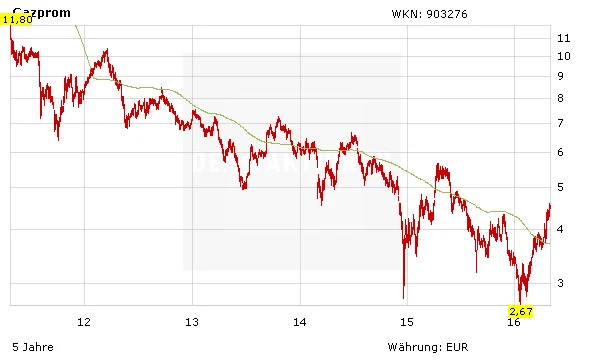 Die Aktie von Gazprom hat ihren zuvor über Monate hinweg gebeutelten Aktionären zuletzt viel Freude bereitet. Allerdings wäre eine Konsolidierungsbewegung nach dem Kursanstieg von rund 70 Prozent seit dem Tief im Januar nun auch durchaus als gesund zu werten. Grundsätzlich bleibt die Aktie aber für mutige Anleger mit einem langen Atem attraktiv. Der Stoppkurs sollte nun bei 3,10 Euro platziert werden.