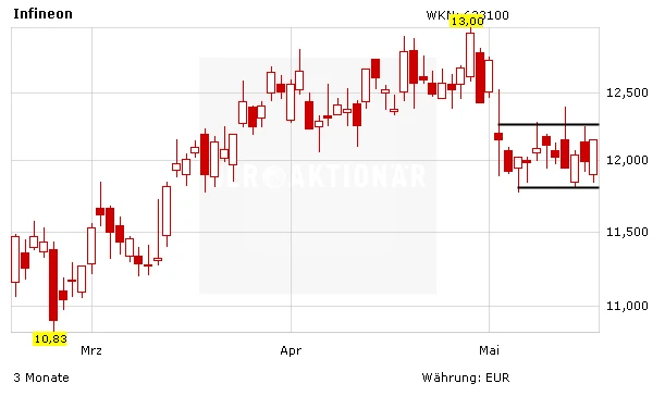Die Aktie tendiert seit Anfang des Montas zwischen 11,80 und 12,30 Euro seitwärts. Investierte Anleger bleiben mit Stopp bei 11,00 Euro dabei. Vor einem Neueinstieg sollte eine Belebung des Aktienkurses abgewartet werden.