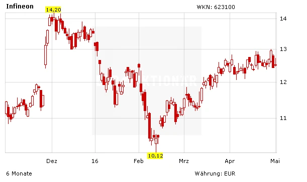 Analysten rechnen zum Vorquartal mit einem Umsatzplus von drei Prozent auf 1,6 Milliarden Euro. Das operative Segmentergebnis soll knapp 213 Millionen Euro erreichen. Die operative Marge würde damit bei knapp 13,3 Prozent liegen (Vorquartal: 14,1 Prozent). Mit beiden Werten hätte das Unternehmen die Prognose des Managements um Vorstandschef Reinhard Ploss gut getroffen. Das Nettoergebnis dürfte in etwa bei 125 Millionen Euro landen, rund 18 Prozent weniger als von Oktober bis Dezember.