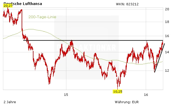 Mit den Zahlen lag die Lufthansa im Rahmen der Erwartungen. Neue Impulse konnten aber nicht geliefert werden. Anleger sollten nun abwarten, ob die Aktie den Sprung über den wichtigen Widerstand bei 15,50 Euro schafft. Oberhalb dieser Marke wird der Titel wieder interessant.