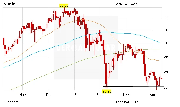 Die Marke von 22,00 Euro sollte sich erneut als solide Unterstützung für die Nordex-Aktie darstellen. Bereits mehrmals hat das Papier an dieser Marke wieder nach oben gedreht. Damit sollte die Aktie ihr Tief für die nächsten Monate gesehen haben.