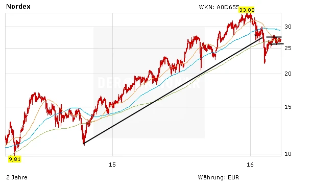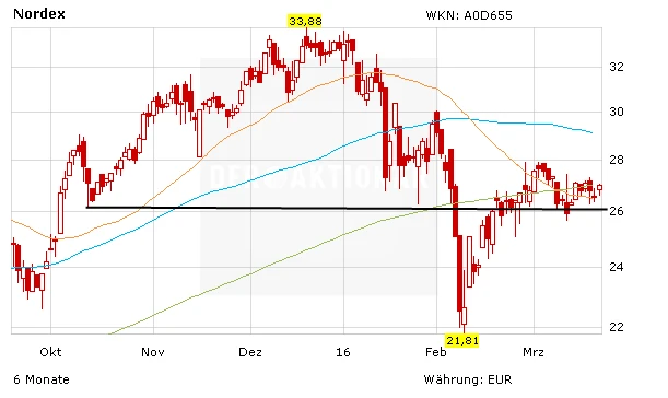 Kurzum: Die Geschäfte bei Nordex laufen rund. Auch die Zukunftsaussichten sind in Ordnung. Das Management war in der Vergangenheit schon immer für seine sehr vorsichtige Planung bekannt. DER AKTIONÄR erwartet in den nächsten Monaten einen anhaltend positiven Newsflow. Bricht die Aktie aus dem Seitwärtstrend bei knapp 28 Euro nach oben aus, eröffnet sich neues Potenzial. Die Aktie bleibt Bestandteil des Aktionär-Musterdepots.