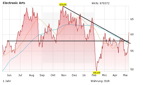 Eine weitere Meldung beflügelt die Aktie: Walt Disney will künftig weniger Spiele selbst entwickeln und 300 Entwickler entlassen. Stattdessen wird man mehr Lizenzen an Partner wie EA vergeben. Dass dies für beide Seiten lukrativ ist, zeigt der Erfolg des Spiels Stars Wars Battlefront. Insgesamt zockten im vierten Quartal 9,4 Millionen Menschen mit diesem EA-Titel.