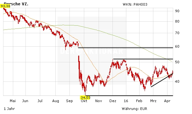 Es gibt zweifelsohne attraktivere und vor allem risikoärmere Aktien in Deutschland – und es gibt drei Gründe, die gegen einen Einstieg sprechen: Der erste Grund sind die Gerichtsrisiken bei der Porsche SE selbst. Der zweite Grund sind (Prozess)-Risiken bei der Volkswagen AG, etwa in Bezug auf die seit Mitte September 2015 öffentlich wahrgenommenen Manipulationen an Diesel-Abgaswerten. Der dritte Grund ist: Wer auf einen Anstieg des Porsche-Kurses setzt, ist gezwungen auf einen Anstieg des Volkswagen-Kurses zu setzen. Warum sollte man also diesen durch Gerichtsprozesse bei Porsche unsicheren Umweg wählen. Der Favorit von DER AKTIONÄR im Automobilsektor bleibt entsprechend Daimler.