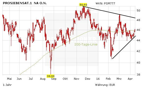 ProSiebenSat.1 bleibt der Branchenfavorit. Zuletzt pendelte der DAX-Aufsteiger zwar im Seitwärtstrend. Durch den Sprung über die 200-Tage-Linie wurde nun aber ein neues Kaufsignal generiert. Anleger können einsteigen und auf steigende Kurse setzen.