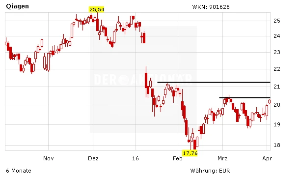 Langfristig würde sich Qiagen aber im extrem spannenden Markt der RNA-Analyse weiter verstärken, was absolut positiv zu werten ist. Wachstum durch Zukäufe ist ein klares Ziel von Qiagen. Finanziell ist Qiagen ohnhin gut aufgestellt, um die Transaktion zu bewerkstelligen. Die nächste charttechnische Hürde, die es jetzt zu überwinden gilt, ist das Märzhoch im Bereich von 20,50 Euro. Knapp darüber wartet der Widerstand bei 21,25 Euro. DER AKTIONÄR empfiehlt die Aktie aus langfristiger Sicht zum Kauf.