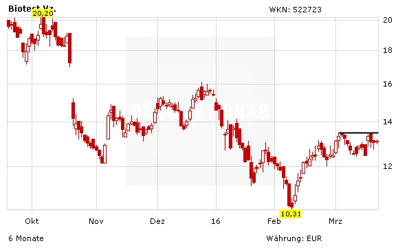 Fundamental befindet sich die Gesellschaft auf Turnaround-Kurs, nachdem das Ergebnis im Vorjahr durch außerplanmäßige Abschreibungen in Höhe von 84 Millionen Euro kräftig ins Minus gerutscht ist. Die vor rund vier Wochen vorgelegten vorläufigen Zahlen haben aber bereits gezeigt, dass Biotest operativ wieder auf Kurs ist und schwarze Zahlen schreibt. Dieser Trend sollte sich im laufenden Jahr bestätigen. Mit dem Geschäftsbericht für 2015 sollte es am 23. März dazu auch einen ersten Ausblick geben.