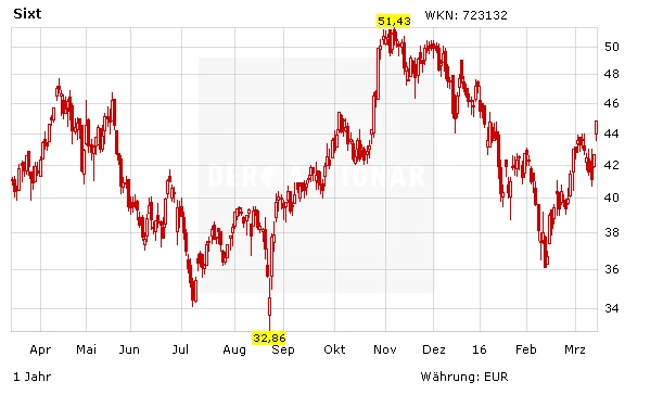 Besonders erfreulich: Sixt plant für Rekordjahr 2015 auch eine Rekorddividende. Vorbehaltlich der Zustimmung durch den Aufsichtsrat wird der Hauptversammlung am 2. Juni vorgeschlagen, eine Dividende von 0,90 Euro (Vorjahr: 0,80 Euro) pro Stammaktie sowie zusätzlich eine Sonderdividende von 0,60 Euro (Vorjahr: 0,40 Euro) zu zahlen. Damit errechnet sich eine Gesamtausschüttung von 1,50 Euro pro Stammaktie. Das entspricht einer Dividendenrendite von 3,2 Prozent.