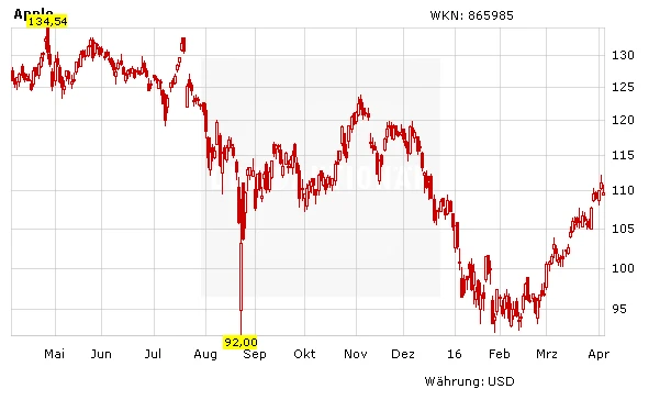 Stimmen die IHS-Berechnungen, sind die Sorgen der Apple-Anleger und –Analysten um die Gewinnmarge unbegründet. Entsprechend notiert die Aktie am Mittwoch vorbörslich wieder moderat im Plus. Investierte Anleger blieben dabei, Neueinsteiger warten noch einen nachhaltigen Sprung über die 200-Tage-Linie bei 111,20 Dollar ab.