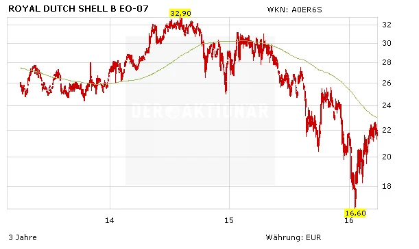 Anstatt auf eine Anleihe zu setzen, mit der man negative Renditen erzielt, sollten Anleger lieber den Mut haben, die Shell-Aktie zu kaufen (Stopp: 17,50 Euro). Die günstig bewerteten Titel weisen aktuell eine Rendite von 7,8 Prozent auf. Angesichts der anhaltend hohen Profitabilität und der Möglichkeit der günstigen Refinanzierung sollte die seit 1945 nicht mehr gesenkte Dividende auch in diesem Jahr wieder 1,88 Dollar betragen.