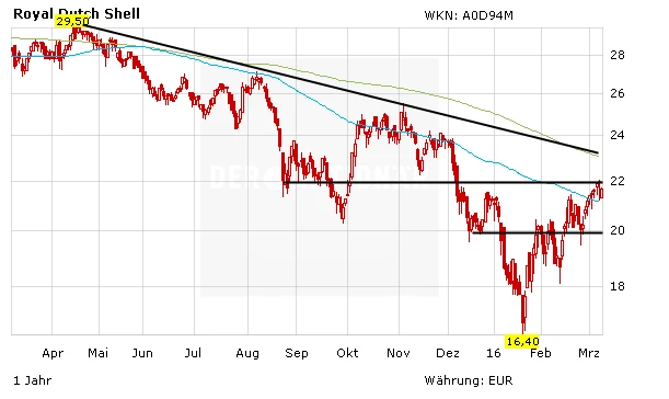 Die Fachleute des Aktionärsbriefes schreiben: Die Aktie der Royal Dutch/Shell plc wird neu gekauft. Die Ausschüttung von 0,47 Dollar pro Quartal, also 1,88 Dollar im Jahr, gilt bis zum Ende des kommenden Jahres als vergleichsweise sicher. Das entspricht einer Dividendenrendite von 8,2 Prozent. Selbst wenn dieser Betrag dann leicht gesenkt werden sollte, ist das bei einer solchen Rendite gut zu verkraften. Zudem dürfte der Ölpreis auf Sicht von zwei Jahren deutlich steigen. In diesem Jahr muss allerdings erst noch das Überangebot an Öl abgebaut und bereinigt werden. Große integrierte Ölkonzerne wie Royal Dutch/Shell sind deshalb auf den aktuellen Kursniveaus interessant, denn sie können mit dem Raffinerie- und Tankstellengeschäft ausgleichen.