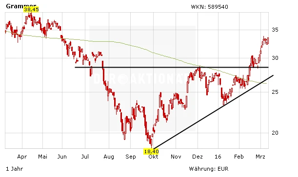 Bereits heute erwirtschaftet Grammer rund 15 Prozent seines Konzernumsatzes in China. Mit dem Joint-Venture stellt sich der Zulieferer dort noch besser auf. Nach der Rallye der vergangenen Monate hat sich auch das Chartbild wieder aufgehellt. In der Branche bleibt Continental aber der Favorit des AKTIONÄR. Der DAX-Rivale ist für die Zukunft bestens gerüstet und bietet mehr Potenzial.