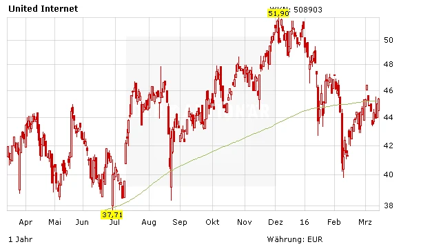 Die Aktie von United Internet ist im Februar unter Druck geraten. Im Zuge dessen hat sie sowohl die 200-Tage-Linie, als auch den Stoppkurs des AKTIONÄR gerissen. In den vergangenen Wochen hat sich der Kurs jedoch spürbar erholt. Für weitere Impulse könnte neben den Zahlen am Donnerstag auch eine Anhebung der Dividende sorgen – Analysten rechnen mit einem Aufschlag von 10 Cent auf 70 Cent je Anteilschein. Dies würde einer Dividendenrendite von rund 1,5 Prozent entsprechen.