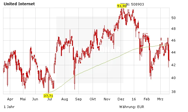 „Wir können den aktuell deutlichen Kursrückgang fundamental nicht nachvollziehen“, sagte DZ-Bank-Analyst Karsten Oblinger. Der Geschäftsbericht für das vergangene Jahr habe seine Erwartungen erfüllt und die sehr guten Kundenzahlen hätten überzeugt. Der Erstausblick sei konservativ. Am Ende werde United Internet mehr Kunden oder einen höheren Gewinn (EBITDA) präsentieren, da ist sich Oblinger sicher. Den Rücksetzer sieht er daher als Einstiegsgelegenheit und empfiehlt die Aktie auch weiterhin mit einem Kursziel von 52 Euro zum Kauf.