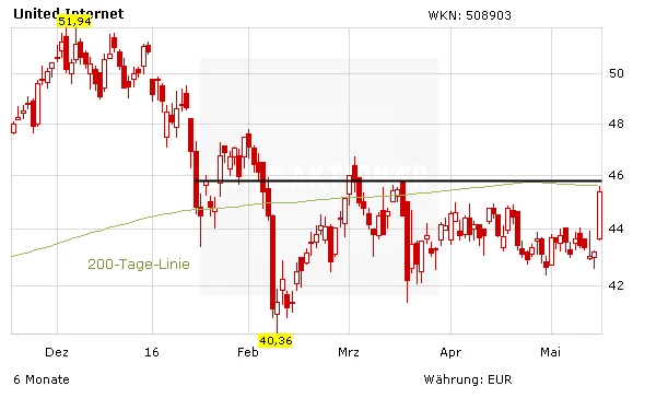 Viele Experten sehen den fairen Wert des Titels über 50 Euro. So zum Beispiel auch Karsten Oblinger von der DZ Bank: Oblinger hat die Einstufung auf "Kaufen" mit einem fairen Wert von 52 Euro belassen. Der Internetdienstleister sei solide ins Jahr gestartet, lautete sein Statement. Die Wertberichtigung auf die Rocket-Internet-Beteiligung sei ein "Schönheitsfehler" und grundsätzlich bekannt gewesen.