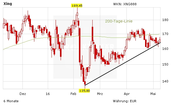 Damit übertraf Xing bei diesem Wert wie auch beim Umsatz und operativen Gewinn die Erwartungen der Experten. Der Erlös legte um 17 Prozent auf 34,3 Millionen Euro zu. Verständlich, dass Analyst Marcus Silbe von der Investmentbank Oddo Seydler die Einstufung auf "Buy" mit einem Kursziel von 200 Euro belassen hat. Laut Silbe ist das Unternehmen auf einem guten Weg und habe seine Erwartungen leicht getoppt.