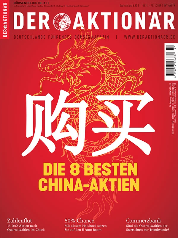 Dazu kommen extrem niedrige KGVs der weltweit agierenden chinesischen Tech-Werte im Vergleich zur US-Konkurrenz. Bei einer Einigung im Handelsstreit – die Zeichen dafür stehen aktuell sehr gut – stehen diverse chinesische Titel vor enormen Wachstumsraten. DER AKTIONÄR bietet seinen Lesern die Möglichkeit, rechtzeitig investiert zu sein. Acht China-Aktien warten im neuen Magazin darauf, entdeckt zu werden. Sie wollen mit dem chinesischen Drachen nach oben steigen? Dann lesen Sie jetzt DER AKTIONÄR.