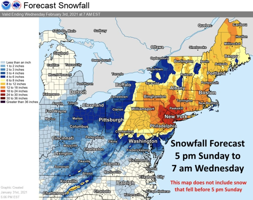 De Blasio sprach davon den gefährlichen Sturm keinesfalls zu unterschätzen und rät den New Yorker Bürgern das Haus nicht zu verlassen. Betroffen von diesem „monumentalen Sturm“ sind mehr als 100 Millionen Menschen in der Region. Letzte Woche sorgte das Tief schon in Teilen Kaliforniens für ungewöhnlich viel Schnee.