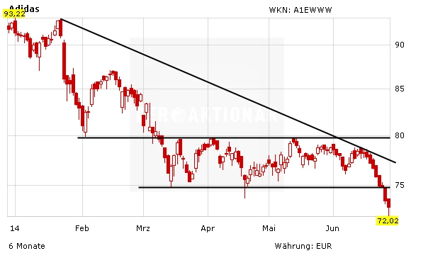 DER AKTIONÄR rät bei der Adidas-Aktie ab zu warten. Auch die Fußball-WM in Brasilien konnte für den DAX-Konzern keine neuen Impulse bringen. Mit dem Bruch der Unterstützung bei 75 Euro hat sich das Chartbild nochmals deutlich eingetrübt. Ein Neueinstieg bietet sich derzeit nicht an. Derzeit ist für Investoren Nike die bessere Wahl. DER AKTIONÄR hatte sich gestern ausführlich im DAF zu Nike und seinem Lauf bei der WM geäußert.