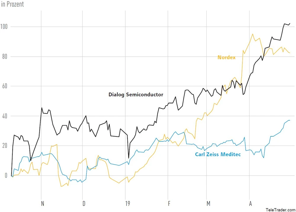 Langfristig eine deutliche Outperformance und eine starke Rendite für die Anleger zu erzielen ist die oberste Maxime. Dies wird auch in Zukunft gelingen. Dazu werden auch die aktuellen Top-Performer des TSI-Fonds ihren Teil dazu beitragen. Unter den fünf stärksten Aktien findet sich neben Cadence Design Systems, Broadcom und Nordex auf dem zweiten Rang die Carl Zeiss Meditec. Unangefochten an der Spitze notiert Dialog Semiconductor mit einem Plus von 58 Prozent.
