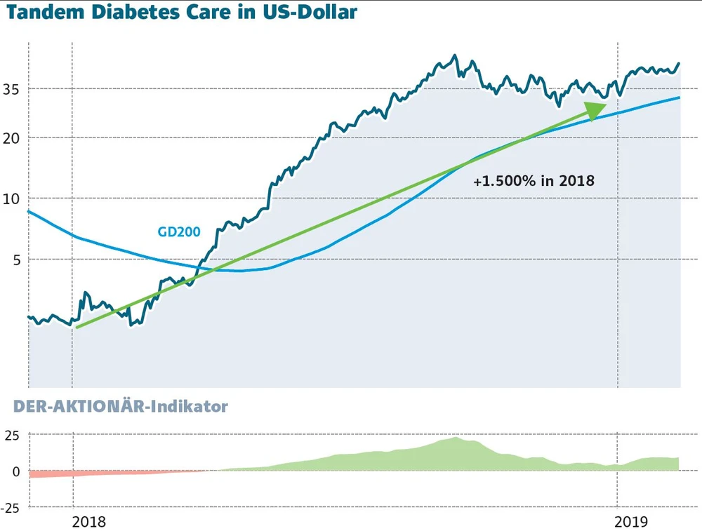 Die TSI-USA-Strategie durchsucht regelmäßig den über 2.500 Aktien umfassenden Nasdaq Composite nach den trendstärksten Aktien. Bereits Ende vergangenen Jahres hat das System die Aktie von Tandem Diabetes identifiziert. Allein im Jahr 2018 konnte der Wert um über 1.500 Prozent nach klettern und gehört damit zu den absoluten Top-Performern. Nun hat er ein weiteres Wichtiges Signal geliefert.