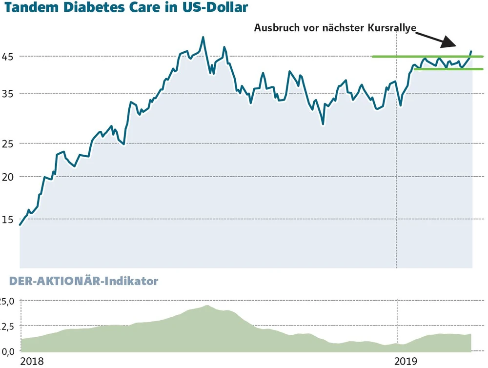 Seit Jahresbeginn konnte sich die Aktie von Tandem Diabetes nach einer leichten Konsolidierung nur in einer engen Range zwischen 41 und 45 Dollar bewegen. Nun hat der Wert aber der Ausbruch über die 45-Dollar-Marke dynamisch vollzogen und damit ein neues charttechnisches Kaufsignal generiert, was weitere Marktteilnehmer anziehen wird.