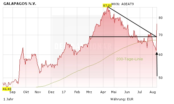 Die belgische Biotech-Schmiede Galapagos kann endlich mit positiven Neuigkeiten aufwarten. Im Rahmen einer Phase-2-Studie bei Lungenfibrose konnten hervorragende Ergebnisse erzielt werden. Anleger feiern den Studienerfolg und katapultieren die Aktie um 18 Prozent nach oben.