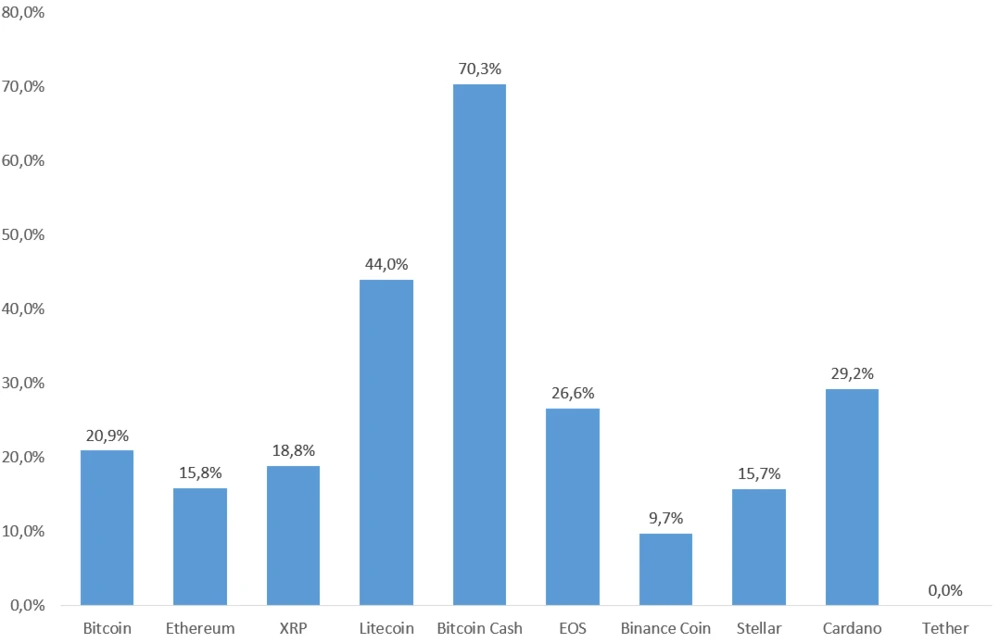 Performance der Top-10-Kryptowährungen seit 1. April in Prozent