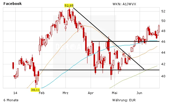 Facebook klettert unbeirrt gen Norden. Jeder gesunden und moderaten Zwischenkonsolidierung folgt der nächste Ausbruch. Vor wenigen Tagen wurde im Candlestick-US-Chart ein Morning Star ausgebildet, die Aktie befindet sich über allen wichtigen Durchschnittslinien. Der Angriff auf das Allzeithoch scheint nur eine Frage der Zeit.