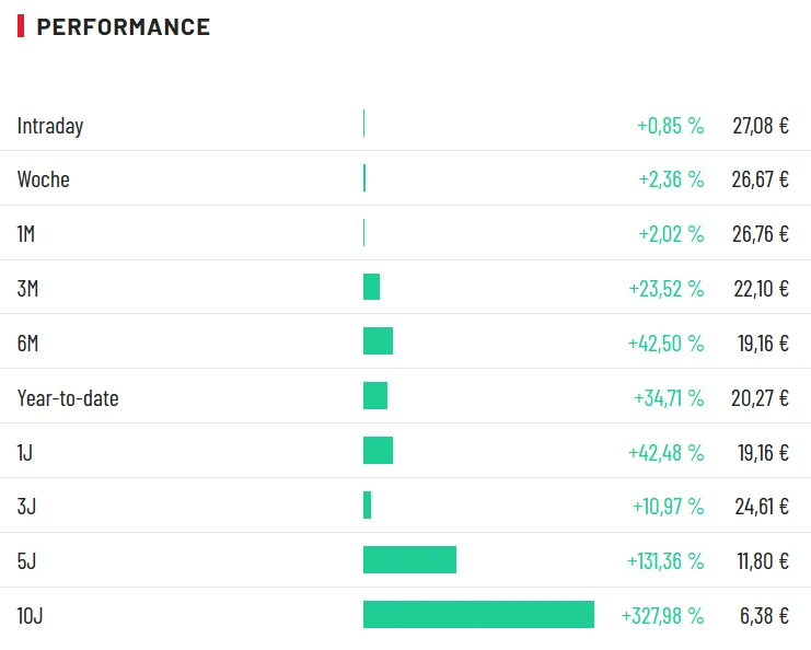Bleiben die Bullen am Drücker, dürften auch in Zukunft die „grünen Zahlen“ dominieren. Die nächste Kaufwelle samt neuem Mehrjahreshoch dürfte nicht mehr lange auf sich warten lassen. Daher lautet das nächste Ziel 30 Euro. Ein Stopp bei 23 Euro sichert die Position ab.