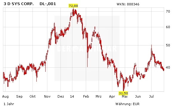 Nun, zunächst einmal sorgt eine derart hohe Shortposition natürlich für Druck auf die Aktie. Aber: Im vergangenen Jahr hat man auch gesehen, was passiert, wenn die Aktie ins Laufen kommt und die Shorties anfangen (müssen), ihre Shortpositionen einzudecken. Dann kann ein Short-Squeeze folgen und das Papier schnell in ungeahnte Höhen befördern. Von daher wird der kommende Donnerstag besonders spannend. Dann wird das Unternehmen vorbörslich seine Zahlen für das abgelaufene zweite Quartal präsentieren. Kann 3D Systems die Erwartungen übertreffen, dann dürfte dies zu einem Sprung nach oben führen. Enttäuscht der Konzern, dann dürfte der Druck zunehmen. Ein Einstieg auf der Long-Seite vor den Zahlen ist daher nur für sehr spekulativ orientierte Anleger angesagt.