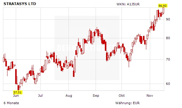 Die Rallye kennt kein Ende: Erneut stehen an der Wall Street die Aktien von 3D-Drucker-Gesellschaften im Blickpunkt. Heute beflügelt eine Analystensudie. Die Bank of America hat das Kursziel für Stratasys von 130 auf 140 Dollar nach oben geschraubt.