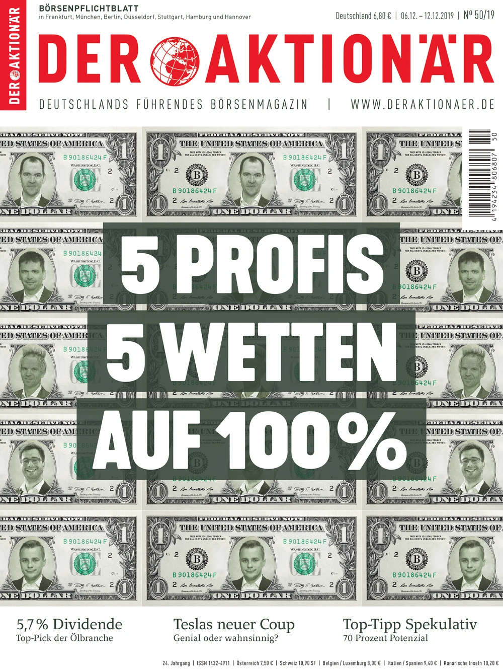 Die Zeit läuft. Fünf Redakteure des AKTIONÄR stellen sich in der aktuellen Ausgabe einer besonderen Herausforderung. Wer erzielt den schnellsten Verdoppler? Gehandelt werden dürfen keine Optionsscheine, sondern ausschließlich Aktien. Dadurch werden die ausgewählten Titel auch für Anleger mit einer risikoreduzierten Strategie interessant. Der Wetteinsatz beträgt in Anlehnung an den Film „Die Glücksritter“ einen Dollar.