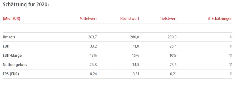 Die Aktie befindet sich seit Vorlage der 9-Monasteszahlen im Aufwind. Am 25. Februar gibt es die Jahreszahlen. Die Prognosen für 2020 dürfte die Gesellschaft erfüllt haben. Beim Umsatz wird ein im Vergleich zum Vorjahr stabiler Wert zwischen 260 bis 280 Millionen Euro erwartet; bei einer Marge zwischen zehn bis 15 Prozent.