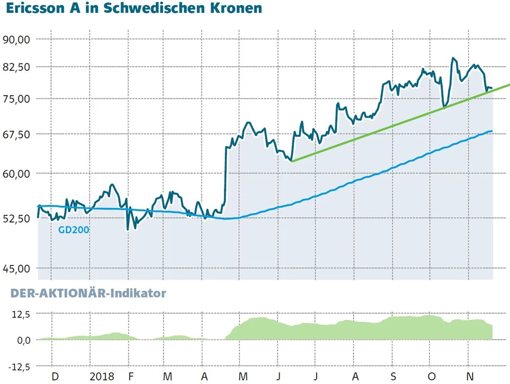 DER AKTIONÄR sieht in Ericsson spekulatives Kurspotenzial bis 10,40 Euro. Nach dem Rücksetzer auf den Aufwärtstrend gibt es das starke Quartal quasi umsonst.