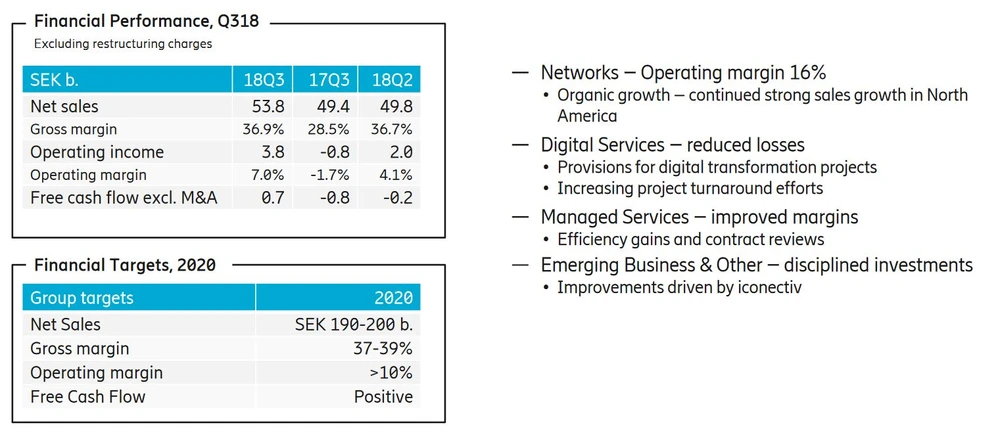In den vergangenen zwei Jahren hatte der schwedische Konzern mit schrumpfenden Umsätzen, Gewinnwarnungen und allzu oft enttäuschten Anlegern zu kämpfen. Für die schwächelnde Bilanz gab es zwei Hauptgründe: Zum einen haben die Mobilfunkanbieter den im Jahr 2010 gestarteten Ausbau der 4G-Netze nach fünf Jahren größtenteils beendet, wichtige Umsätze brachen weg. Zum anderen erschwerten es die aufstrebenden chinesischen Konkurrenten Huawei und ZTE den Schweden, in den schnellwachsenden asiatischen Märkten Fuß zu fassen.